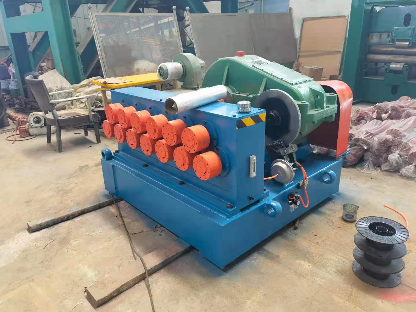 校平機(jī)也稱矯正機(jī)、整平機(jī),置于料架(或裁焊機(jī))與送料機(jī)之間,用于卷料的校平送進(jìn)。它是板材加工中常用的設(shè)備,校平機(jī)的定型主要取決于被校帶材的厚度、材質(zhì)和要求,料越厚所需結(jié)構(gòu)剛性要越好,輥數(shù)越少,輥徑越大,功率越大(幅寬一定),反之亦然.