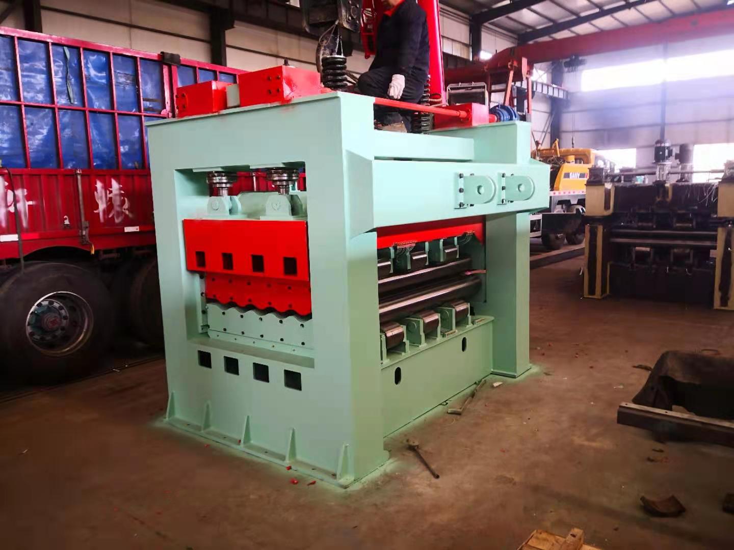 校平機也稱矯正機、整平機,置于料架(或裁焊機)與送料機之間,用于卷料的校平送進。它是板材加工中常用的設備,校平機的定型主要取決于被校帶材的厚度、材質和要求,料越厚所需結構剛性要越好,輥數(shù)越少,輥徑越大,功率越大(幅寬一定),反之亦然